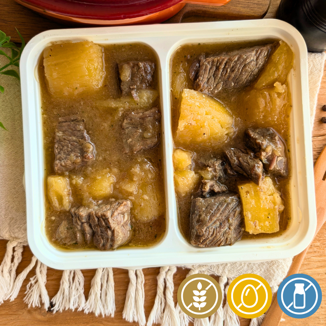脂身の少ない牛スペアリブを丁寧に下処理し、じっくりと煮込みました。香り豊かでコクのあるスープが、ほろほろと崩れるキャッサバ(タピオカ芋)を包み込み、自然なとろみを生み出します。高品質なタンパク質とブラジル家庭料理の温かみを併せ持つ、満足感たっぷりの一品です。